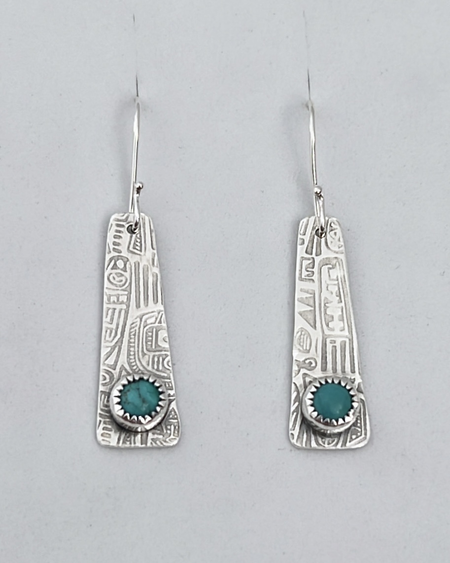 Fine Silver (.999) Handmade Earrings with 6mm Round Turquoise (the earrings are approx. 30mm long, 46mm if you count the hook). The hooks are in sterling silver (.925)